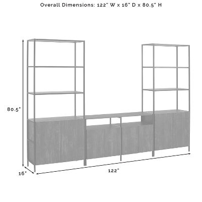 Bring a modern edge to home entertaining with the Jacobsen 3pc Entertainment Set. Featuring two large étagères and a media stand, this set offers sturdy open shelves for display, plus large cabinets for hidden storage. The industrial look of rich wood combined with steel creates a beautiful framework for a television to be set-up on the media stand or hung on the wall between the etageres. The Jacobsen 3pc Entertainment Set brings rustic and modern elements together in one stunning package.