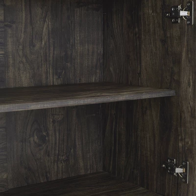 - Media stand has two cabinets with adjustable shelving and magnetic closures