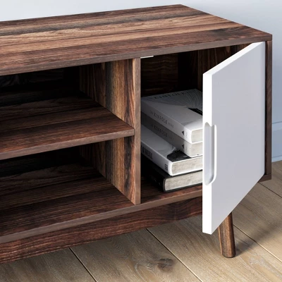 - Organize your gaming components on this multi-storage TV stand made of engineered wood.