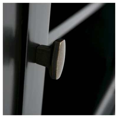 - Metal hardware accents and simple finish blend seamlessly with a variety of decor styles