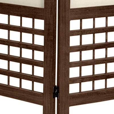 The Tall Open Lattice Fabric Room Divider – Burnt Brown is neutral yet dynamic, with snappy stripes to stretch the eye across the 4 panels of this folding screen. At 5 1/2′ tall, this decorative frame adds striking visual geometry to interiors, effectively concealing areas and creating temporary spaces. Its hardwood frame folds at the joints for easy transport.