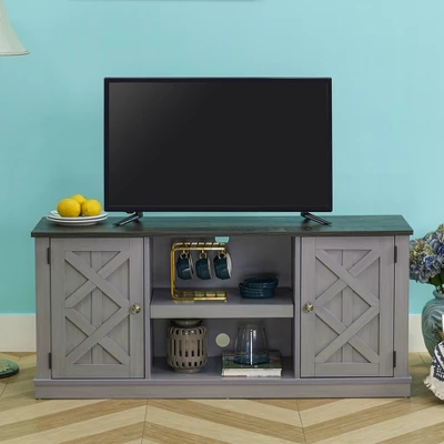 This TV stand features a coast-to-coast sliding barn-door design with one cabinet, and up to 3 adjustable open shelves. The cable management cutouts will keep your audio and video cables clean and tidy. Its ranch rustic style would perfectly match your current decor. Enhance your usage and entertainment experience with this compact design in your sitting room, bedroom, or open concept living space.