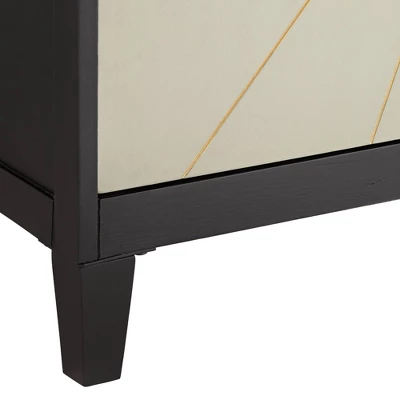 Contrasting finishes and a sunbeam pattern make this wooden two-door cabinet a must-have for your modern living room space. From the 55 Downing Street brand, this design boasts a combination of gray and gold finishes over its wooden construction. Two doors conceal the two shelves, which are ideal for storing personal effects.