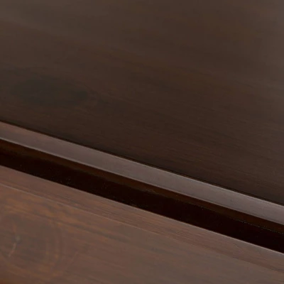 - Hand-finished with a Russet Brown stain and a protective NC lacquer to accentuate and highlight the grain and the uniqueness of each piece of furniture.