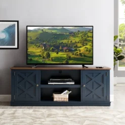 Keep your wine stored in an organized way. A built-in wine rack lets you store up to nine bottles of your favorite wines, glass doors and reveal shelved storage for plates, serve ware, and handles of your preferred spirits, while the lower shelf is great for showing off display plates or mugs. The product’s dimension is 24″ x 64″ x 15.5″ which is recommended for TV’s size – 58″ to maximum 64″