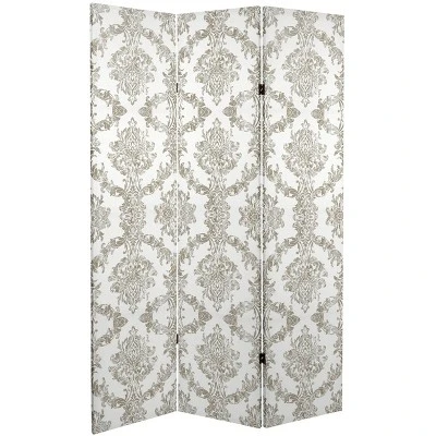 6″ Double Sided Damask Canvas Room Divider Ivory – Oriental Furniture