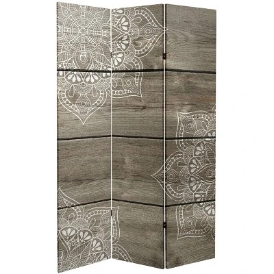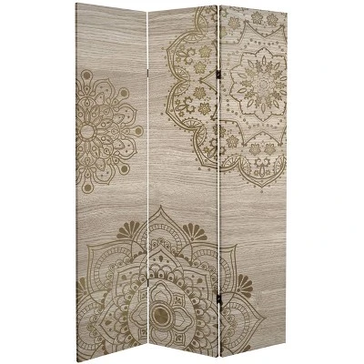 6″ Double Sided Mandala On Oak Canvas Room Divider Beige – Oriental Furniture