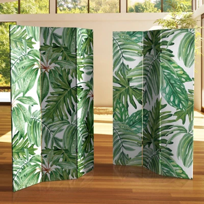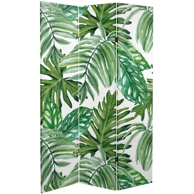 6″ Double Sided Palm Leaves Canvas Room Divider Green – Oriental Furniture