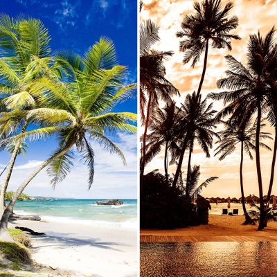 6″ Double Sided Sunset Palms Canvas Room Divider Blue – Oriental Furniture