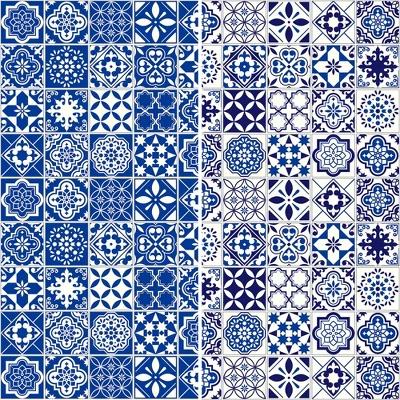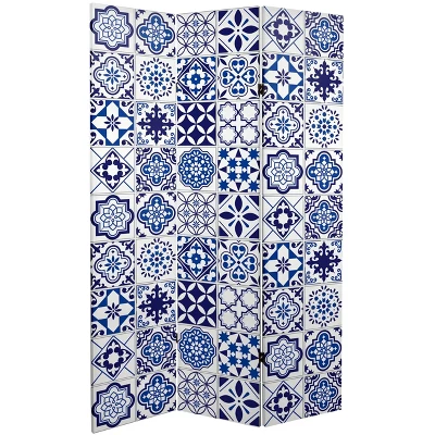 6″ Double Sided Tile Canvas Room Divider Blue – Oriental Furniture