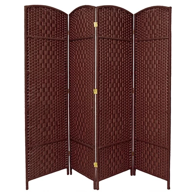 Bring an instant update to your space with the bold look of the Diamond Weave Fiber Room Divider from Oriental Furniture. This four-panel room divider is the perfect solution whether you want to separate your bed from your living space in a studio apartment or you want to tuck away a reading corner. With the hardwood and metal construction, this screen can be arranged in any configuration you want.