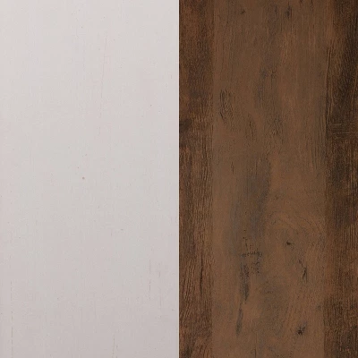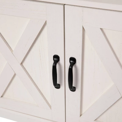 Get modern farmhouse style with a sophisticated rustic feel in this beautifully designed media console finely crafted from engineered wood with metal hardware and steel brackets. Barn inspired doors with X-shaped accents and four open shelves provide style and utility. A cable management hole carved in the back helps reduce visual clutter in your home for an organized feel. Perfectly capture your style with this perfect blend of modern materials and rustic styling.