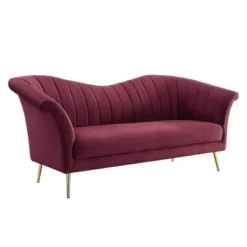 Looking to create a glamorous living room, look no further. The Heibero collection is ideal for that. Featuring timeless button tufting and the more modernized fine details such as the mirrored trim accents. The burgundy velvet upholstery is an eye-catcher. Have the best of both worlds contemporary and classic all in one with this collection. Solidly constructed, this sofa rests securely on four acrylic legs. This collection is a perfect solution for providing seating for you and all your guests.