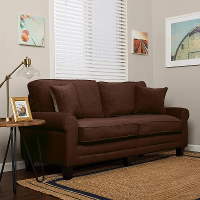 Enjoy functional style and plush, comfortable seating with the Serta Copenhagen 78 Inch Sofa. A great solution for smaller spaces, its compact size and easy tool-free assembly makes it an affordable and stylish seating solution for your apartment, condo or office. Soft rounded arms and pillowy back cushions bring traditional style to your living room, den or game room. Quality hardwood materials deliver strength and stability you can count on, while individually wrapped coils surrounded by high-density foam and poly-fibers provide comfortable seating you can sit back into. Designed to match pieces in the Copenhagen Collection, this Serta sofa can be combined with another sofa, loveseat and accent chair for a completely coordinated look.
