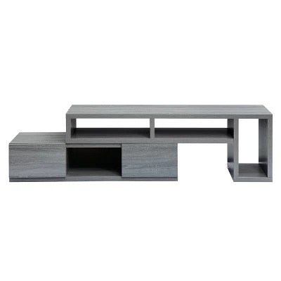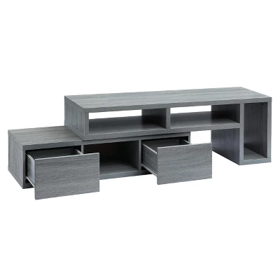Techni Mobili Expandable TV Stand will enhance your entertainment area with this asymmetrical inspired piece of art. Finished in calming gray, this 53.5″ expandable TV stand is the perfect blend of style and functionality. Easily slides open to a full length of 82.5″, this piece is uniquely yours to design to accommodate your needs within your entertainment space. With two large storage drawers and four shelves to keep your media items organized and clutter free, the versatility of this piece make this a must have in any home. Color: Gray