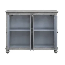Routed detailing and a vibrant blue exterior are just start for this versatile credenza. This unit boasts four spacious drawers and two doors that house two fixed shelves perfect for creating an epic entertainment center or a charming buffet.