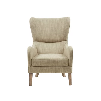 The Aria Swoop Wing Chair offers a unique style and comfort to elevate your home decor. This chic transitional accent chair features a high, wing style back and comfortable loose seat upholstered in a polyester fabric. The rounded arms help highlight the charming silhouette, while piping details around the edge add dimension. Solid wood legs provide a sturdy base and complement the upholstery. Simple and clean in design, this swoop wing chair provides a fashionable update to your living room decor. Leg assembly is required and tools are included.
