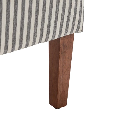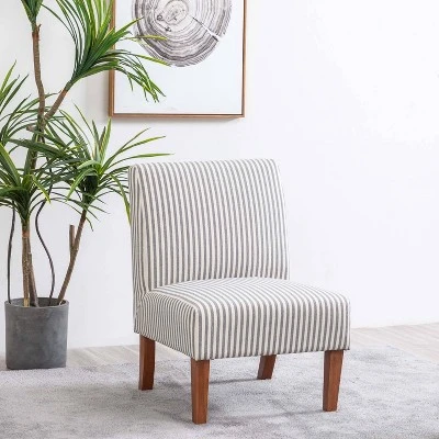 Designed as a stylish and functional accent chair solution for your home, this armless accent chair with wood legs will be a smart addition to any space. Built to work in multiple spaces, this armless slipper accent chair has easy to assemble wooden legs in rich walnut hues and is offered in a range of fabrics to compliment many interior design styles. Classic in form and versatile in function, use this chair in your bedroom, pair two together in a living room or entry way, and even try as a dining solution. The versatile scale of the frame and classic fabric and wood finish combinations will offer lasting style for you to enjoy. Easy to assemble and care for. Spot clean, as needed.