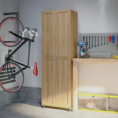 Add extra storage space to any room in your home with the RealRooms Basin Framed Storage Cabinet. Made of laminated particleboard and available in several neutral so the Cabinet can be used anywhere. The interior of this Cabinet features 5 shelves, 3 adjustable, allowing you to customize your storage for both small and large items. Store and organize anything from office supplies to cleaning supplies and even kitchen pantry items. The adjustable feet make keeping your Cabinet level on uneven floors simple. A wall anchor kit is included to secure the Cabinet to the wall and prevent tipping injuries. Use this piece as a stand-alone item or combine it with additional RealRooms Basin Framed storage items to create the perfect storage solution for your home. Available in multiple colors and sizes.