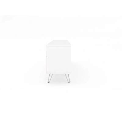 Finish off your space with the TV stand Mid Century Modern fans will appreciate and create the perfect living room entertainment mainstay for loved ones. Two center rectangular shelves store all your media accessories and essentials, while two concealed storage compartments keep things like books, magazines, or DVDs safely stashed away. With its clean lines, splayed metal feet, and sleek design, this piece will impress all your guests and become your best purchase.