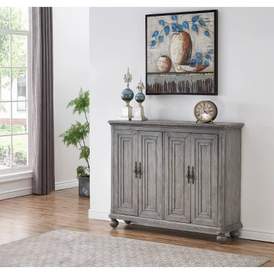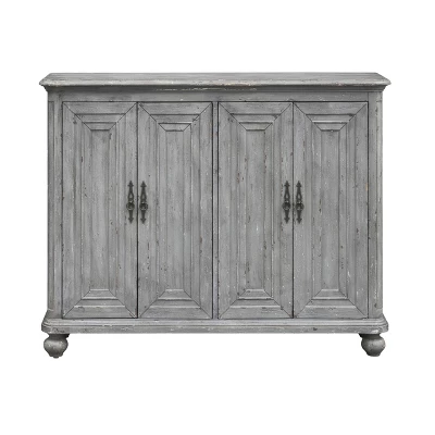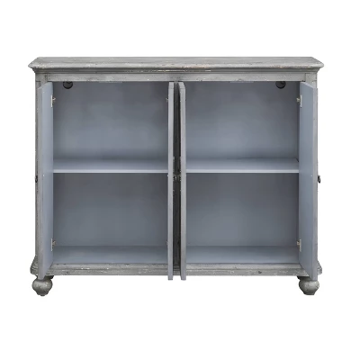 The benefits of adding this credenza to your living room? We can name a few. It holds everything from spare seasonal tablecloths to your good plates. Plus, there is room on top for you to set out a spread of food, or a vase of tulips. Its distressed Cade blue-grey hue and rustic dark hardware add to its antique-inspired aesthetic.