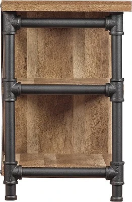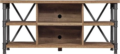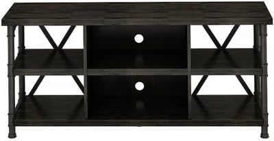 Nothing speaks more directly to today’s rustic & urban design schemes than the Collins Media Console. The mixed material design of the Collins adds plenty of visual interest with its combination of metal bars and driftwood colored wood construction. The quality construction and durable materials allow the cabinet to accommodate televisions up to 60 inch or 75 lbs. This gives you the opportunity to create the perfect home theater setup. Two open side cabinets on either side not only offer space for showcasing your favorite decorative pieces, but it also allows perfect sight to the functional and decorative cross bars at the back of the shelves. Two additional center shelves can be utilized for housing your cable box, DVD player or gaming system as the solid backs feature integrated cable management holes. Don’t be limited to just the idea of a TV stand, this unique piece of furniture is also perfect as a hall or accent table. The Collins is easy to assemble and comes with simple, straight forward instructions. Tipping restraint hardware is included to not only protect your electronics, but also to ensure the safety pets and small children.
