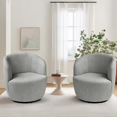 Bella Swivel Barrel Chairs Set Of 2,Contemporary Farmhouse 28” Seat Width Linen Swivel Chair,Armrest 360° Swivel Nursery Chair-Maison Boucle