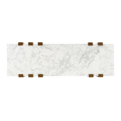 An abstract art lover’s dream, this console has an organic beauty, combining a Starshine white marble top and a geometric metal base in a soft gold finish. Every piece is unique due to the natural grey veining throughout the authentic marble tops. Sure to be a conversation piece in any living room.