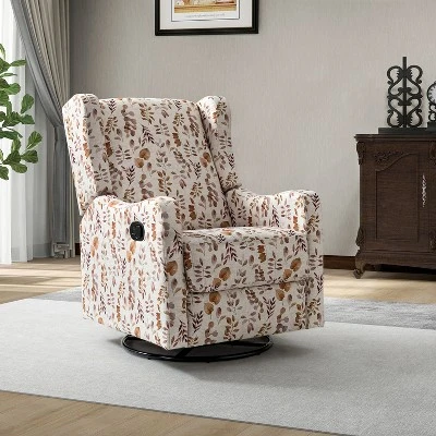 This recliner offers a vintage look that is very practical for your home. It features a unique wingback design and patterned design which will blow you away. This recliner is a push-back recliner that allows you to lay back and relax after a long day. Simply pull the armrest side handles gently and use your weight to push the recliner back to recline. Tilt your weight forward and up to bring it back to an upright position. This recliner offers the ultimate comfort with a wonderfully relaxing glide feature and a convenient swivel function. Ideal for discovering the perfect position for you, this recliner will quickly become your new favorite recliner in the house. Item Size:27.5″Wx37″Dx39″H, Seat Size:20.5″Wx20.5″Dx19″H