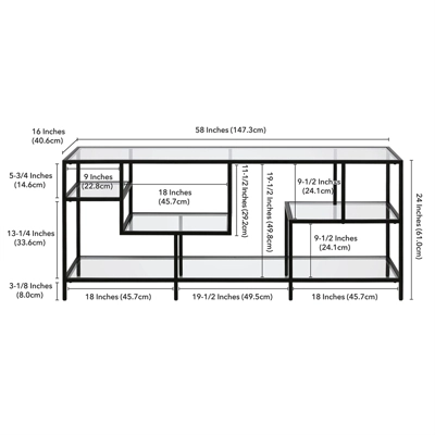 Combine functionality and on-trend design with this sturdy yet fashionable TV stand. Its tempered glass top and shelves are offset by your choice of neutral metallic finishes. Etagere-inspired shelving creates visual interest and provides an artful backdrop for your media collections or decorative items. Go modern in Black Bronze or glam in golden brass to elevate your entertainment space.Features : Accommodates TVs up to 65″Hand crafted Black Bronze finish is applied to the steel frame.Features a tempered glass top and shelves.Weight capacity is 75 lbs. on top, 20 lbs. on middle shelf, and 50 lbs. on bottom shelf.Features easy assembly.Clean with a soft, dry cloth; no harsh chemicals or abrasive cleaning materials.Specifications : Product Weight : 74.10 lbs