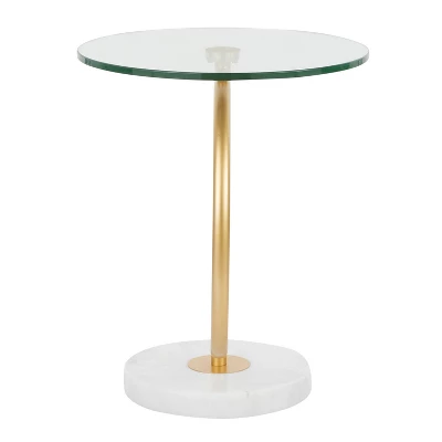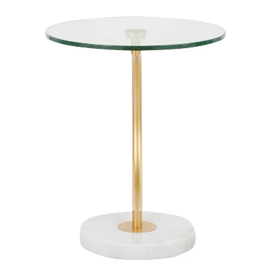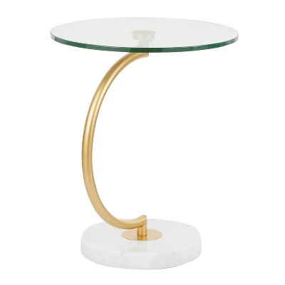 Sophisticated and unique, the C-Shaped Table’s curvaceous design will be sure to turn heads. A sleek gold stem supports a glass table top and sits on a white marble base. Great for use as an end table or accent table. Add a modern cosmopolitan style to your space by featuring this stylish design in your home.