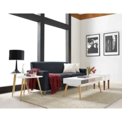 Bring a touch of midcentury modern style to any small space with a two-door storage cabinet. Designed with tapered legs and a low profile, this cabinet is made of walnut-stained wood veneer and features stylish doors and two shelves for plenty of storage space. The roomy interior and large top allow you to use the wooden storage cabinet in a variety of different ways and in virtually any room in the house. Use it as an entry table by the front door, a sideboard in the dining room, or as a mid century bar cabinet.