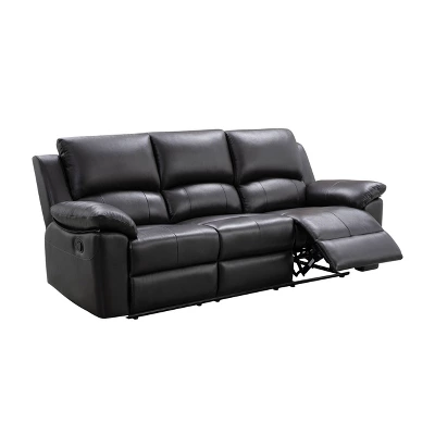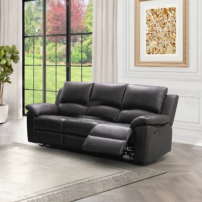 This Reclining sofa by Abbyson was designed with luxury and functionality for your living space. Top Grain leather for longevity, dense foam cushioning for comfort, and a transitional design to suit any living space. Design and stitching details highlight the best features of this piece for the perfect entertainment or relaxation memories.