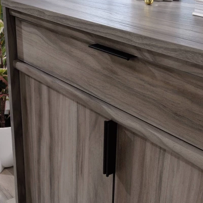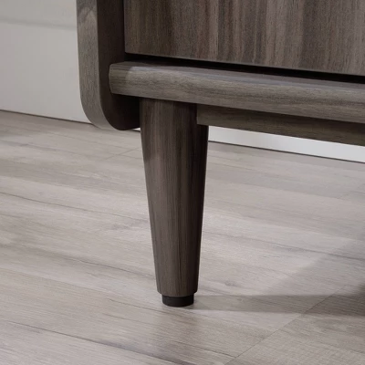 This library base cabinet from the Clifford Place® collection brings various storage options to one sleek unit. A storage drawer with full extension slides makes this two-door base cabinet the perfect place for storing pens, chargers, sticky notes and more. The hidden storage behind the door features a large adjustable shelf to provide flexibility and accommodate items of various heights. You’ll never have an issue finding a place for that oversized book, storage for your printer, or somewhere to stash your books and binders. This base storage cabinet features a grommet hole with pass-through for cord management for your printer, a lamp, your cell phone charger and more. Finished on all sides for a polished look, this library storage cabinet will look great from every angle. Solid wood feet and a Jet Acaciaâ„¢ finish make this 2-door storage cabinet stylish and sturdy. For a midcentury modern design, look no further this this library cabinet.