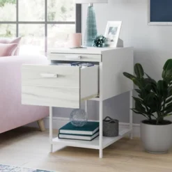 - Storage drawer with full extension slides for pens, notepads, chargers, and more.