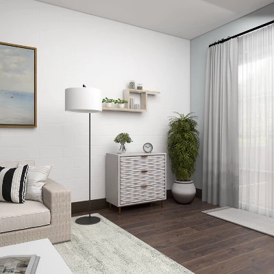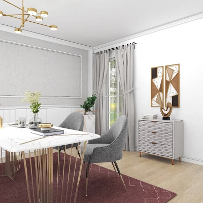 A practical yet stylish upgrade that instantly elevate the look of your room. Maintain a clutter free zone and stay organize with this chic cabinet. Add a charming piece of cabinet decor into your modern living spaces with this chic white and gold corner cabinet as you elevate its style with a framed canvas wall art or a large metal wall mirror. This item ships in 1 carton. White cabinet features 3 drawers with 25 lbs weight limit. Suitable for indoor use only. Maximum weight limit is 100 lbs. This is a single cabinet. Contemporary style.