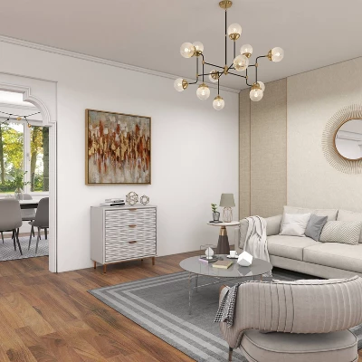 - â˘Contemporary accent chest features white and gold finishes that add style and personality to your home