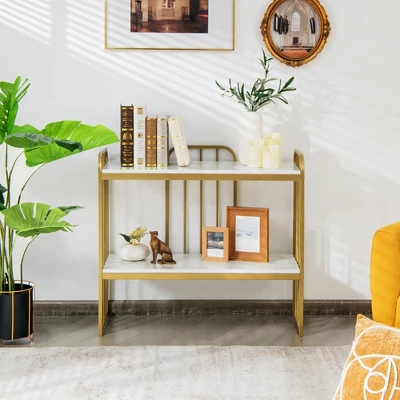 Costway 2-Tier Console Table Modern Buffet Serving Table Storage Shelf For Entryway