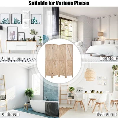 - Classic Style & No Assembly: This natural and concise privacy screen withx-shaped long edge ornament is nice-looking and will be a great addition in your home. We pack this folding screen only with one box and there is no assemble required. That means you can use it at the first time when you receive.