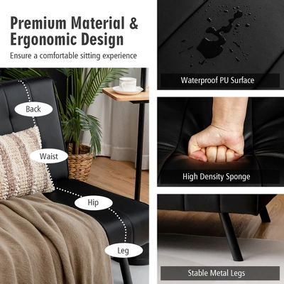 With 3 adjustable angles (105°, 135° and 180°), the sofa bed enables you to adjust it according to your daily needs. Smooth PU surface and comfortable seat cushion offer you super comfort. Besides, strong frame and solid metal legs make it durable and stable, which well protects your safety. In addition, clear instruction and all necessary accessories help you to assemble it easily.