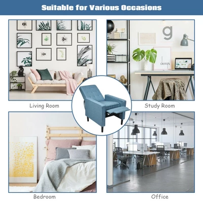 - Selected Material: Filled with high-resilient thick sponge, this push back recliner is soft enough to enjoy yourself and relax your body after tired work. Fine linen cover features gentle texture and friendly touch. And it is supported by solid rubber wood legs to ensure durability and strong load-bearing capacity of 330 lbs.