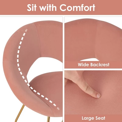 - Charming Addition: Combining pink velvet and golden metal legs, this modern accent chair makes a timeless addition to your home decoration.