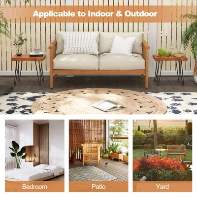 Costway Rectangular End Table Accent Side Reclaimed Teak Wood Plant Stand Patio Rustic