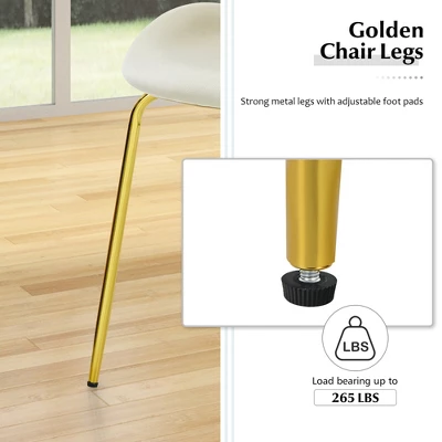 - Mid-century Style & Wide Application: The special shape with skinny golden legs makes this set of chairs a pop of luxury to your kitchen, dining room, dressing room, or living room. This leisure chair can serve as makeup vanity chair, dining chair, side chair and so on.