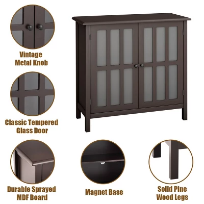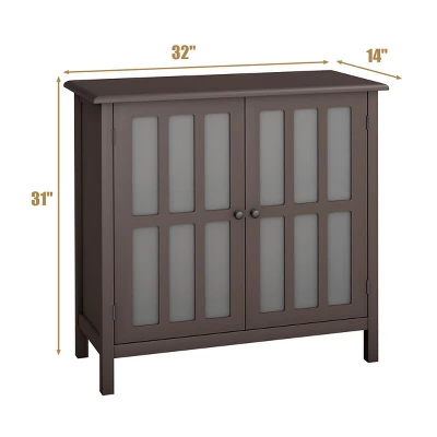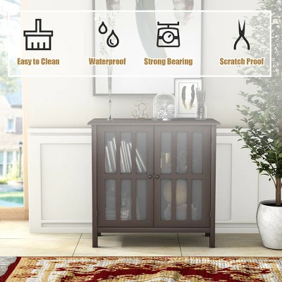 Costway Storage Buffet Cabinet Glass Door Sideboard Console Table Server Display Brown