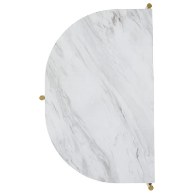 Amalgamate your existing decor setting by bringing in this transitional style Chair Side End Table which comes in a crescent moon shape. Constructed from the combination of faux marble and metal, it is accented with white and gold finish. A single piece of Chair Side End Table. Crescent moon shaped