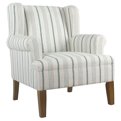 Our classic rolled arm Emerson chair offers comfort and style. The fabric creates a textured feel and a complex appearance, enhanced by the 8 inch legs in a honey oak finish. Our Emerson Rolled Arm Accent Chair has a timeless appeal that complements a broad range of home décor. Use one accent chair in your living room or bedroom or pair two together for a fashionable seating solution. Easy to assemble and maintain.