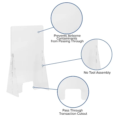 Protect employees who come into contact with customers on a daily basis from bacteria and viruses with this clear acrylic register shield. The sneeze guard protects both employee and customer by preventing the transmission of droplets. A 8.25″W x 8″H opening allows card and cash transactions to be passed through for processing. Protect your business by protecting your employees and customers with a plexiglass barrier for the counter, front desk, grocery store, and customer service locations. The clear counter shield is transparent to help maintain personal interactions for a seamless, enjoyable customer experience. Although simple in design, these register shields mean business to keep you in business. Additional Features: Pass-Through opening for transactions, Ideal for cash registers, front desk clerks, hostess stations, bank tellers and other customer facing jobs, Designed for Use in Customer Facing Locations