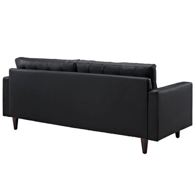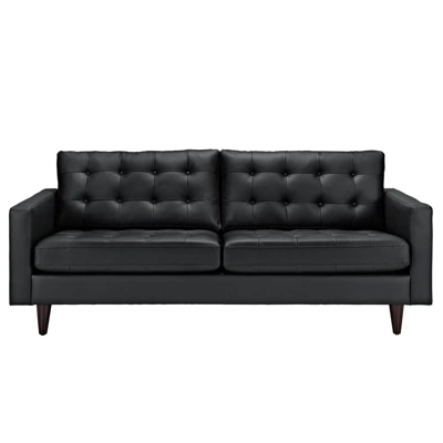 End the rule of unjust sovereignties that wage a useless war for your interiors. Empress leaves the would be heiress of holistic furnishings in the dust, with a design that rivals any competitor. Empress is heralded with deeply tufted buttons, plush cushions and armrests that convey that perfect air of nobility. The solid wood legs come with plastic glides to prevent floor scratching, and the bonded leather upholstery leaves the recipients feeling richly rewarded.