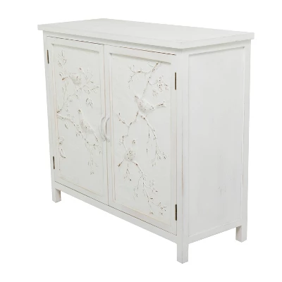 Organize your belongings and display decor with this elegant and rustic farmhouse storage cabinet to flatter your living room or bedroom space. A practical yet stylish upgrade that instantly elevate the look of your room. Maintain a clutter free zone and stay organize with this chic cabinet. Designed with black rubber stoppers at the base that prevent scratching on floor surface, as well as sliding around. This cabinet has 2 doors. Item comes shipped in one carton. Suitable for indoor use only. Furnished with 1 interior shelf. Farmhouse design. Maximum weight limit is 100 lbs. Furnished with 1 interior shelf. This item comes with mounting hardware to prevent tipping.